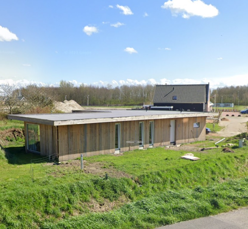 Some time ago, I came across this project in Achthuizen, Netherlands. It’s an interesting design with 5 x 40ft HC containers. Three containers are used to house the entrance, kitchen and living room. Two containers to house the bedrooms and bathroom. It’s an L-shaped design fitting the plot it is built on.